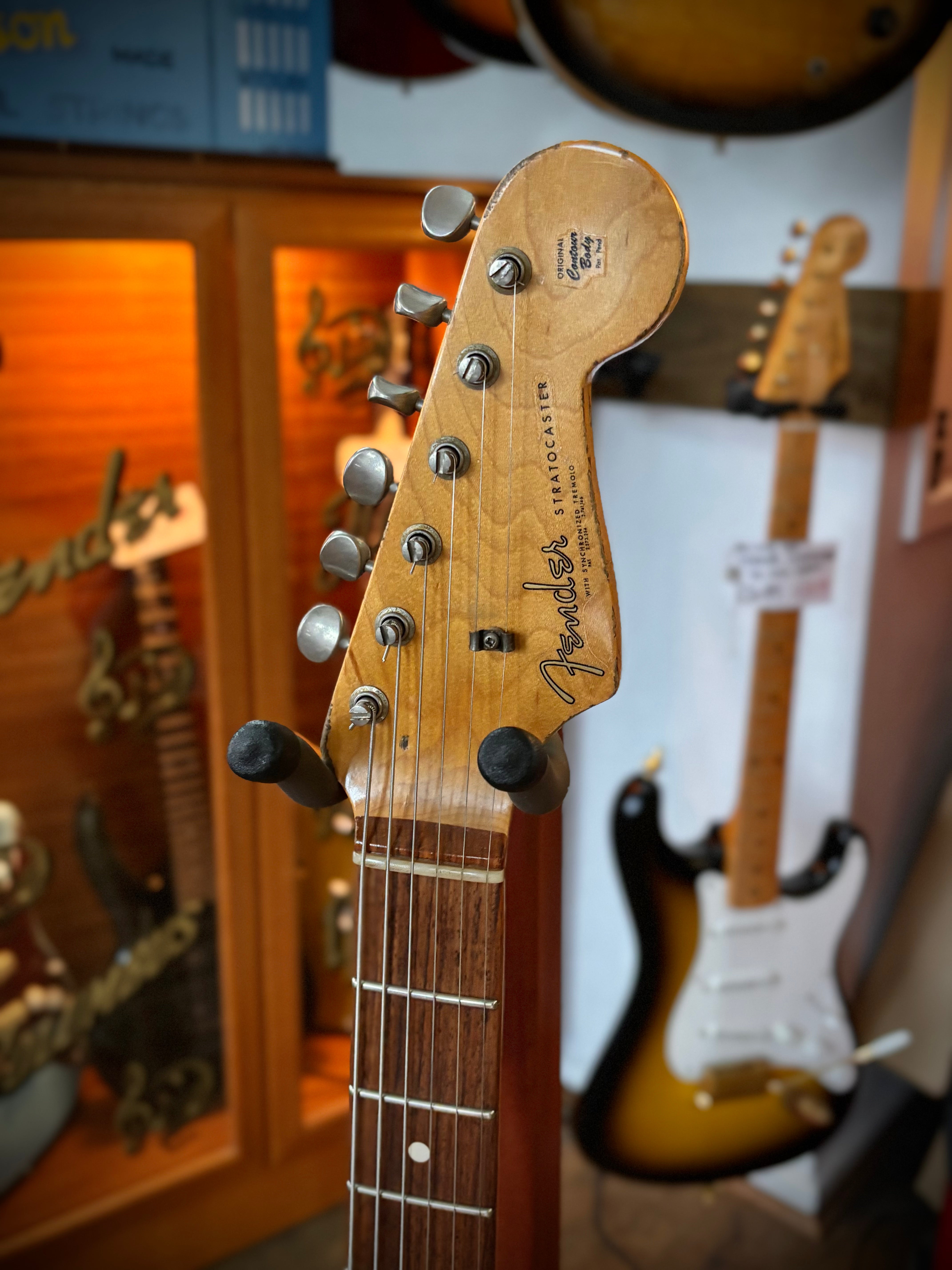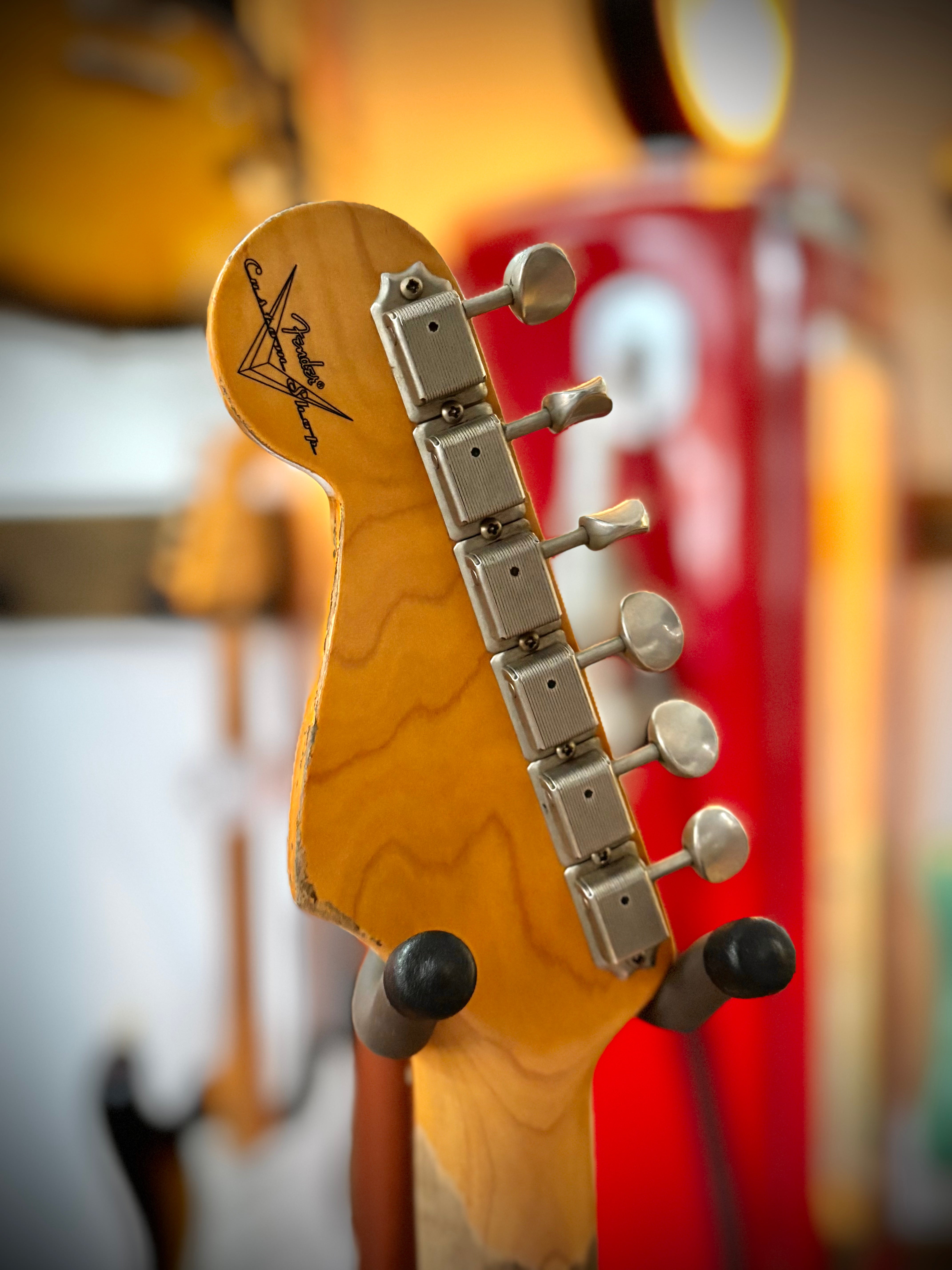 It comes with its premium brown leather-bound Fender custom shop hard case, paperwork, tags, trem arm, shopfloor traveller, springs, custom shop catalogue, and its Certificate of Authenticity.