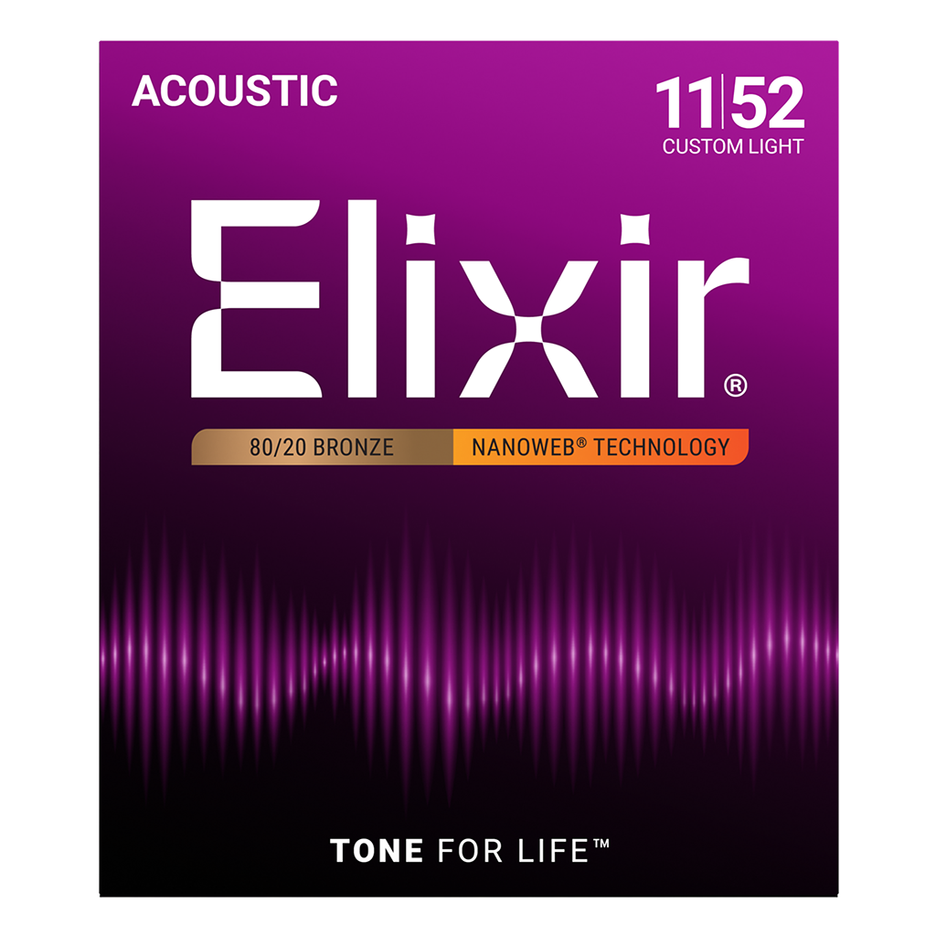 Elixir Strings 80/20 Bronze Acoustic Guitar Strings with NANOWEB Coating, Custom Light (.011-.052) | E11027