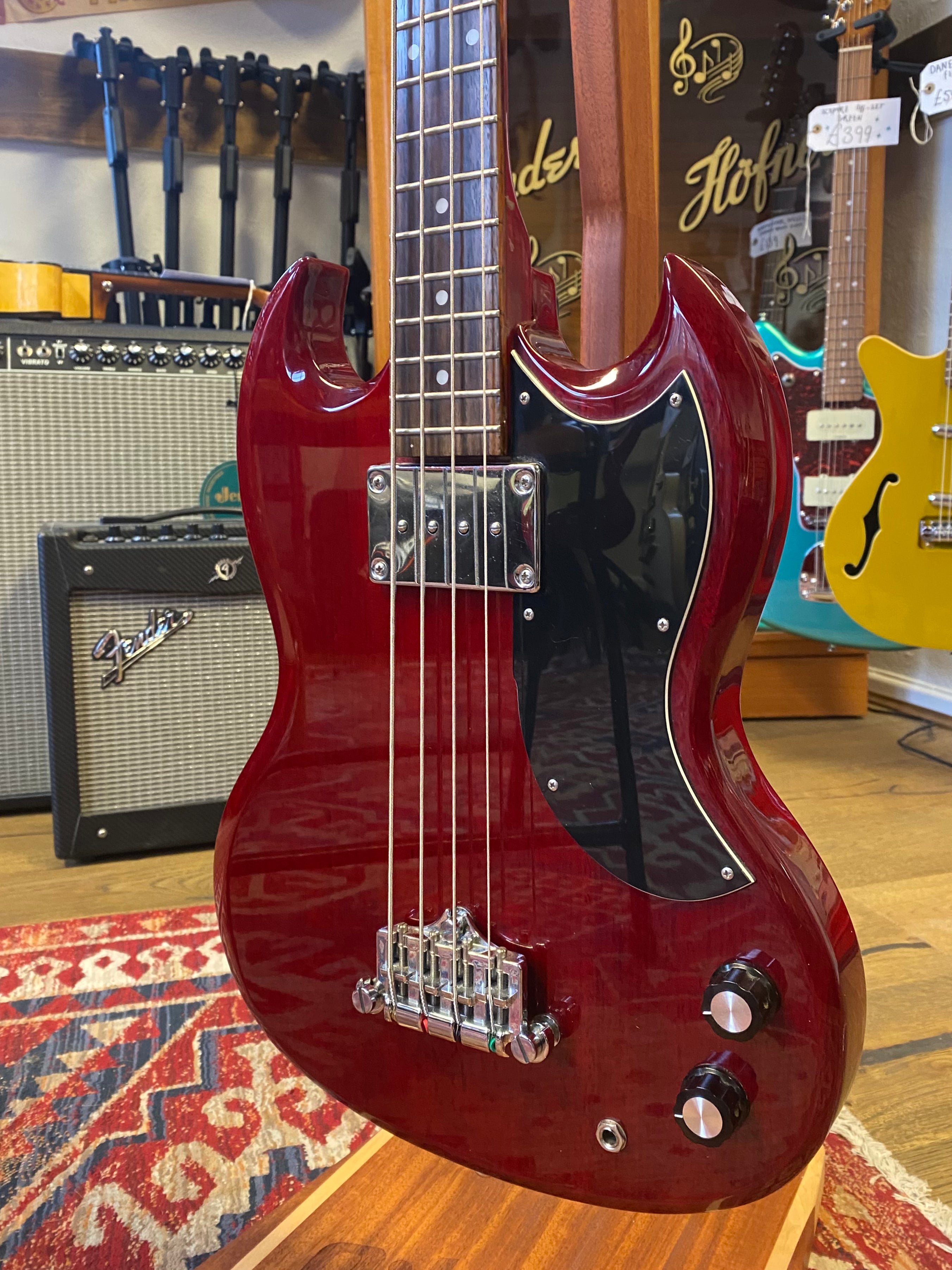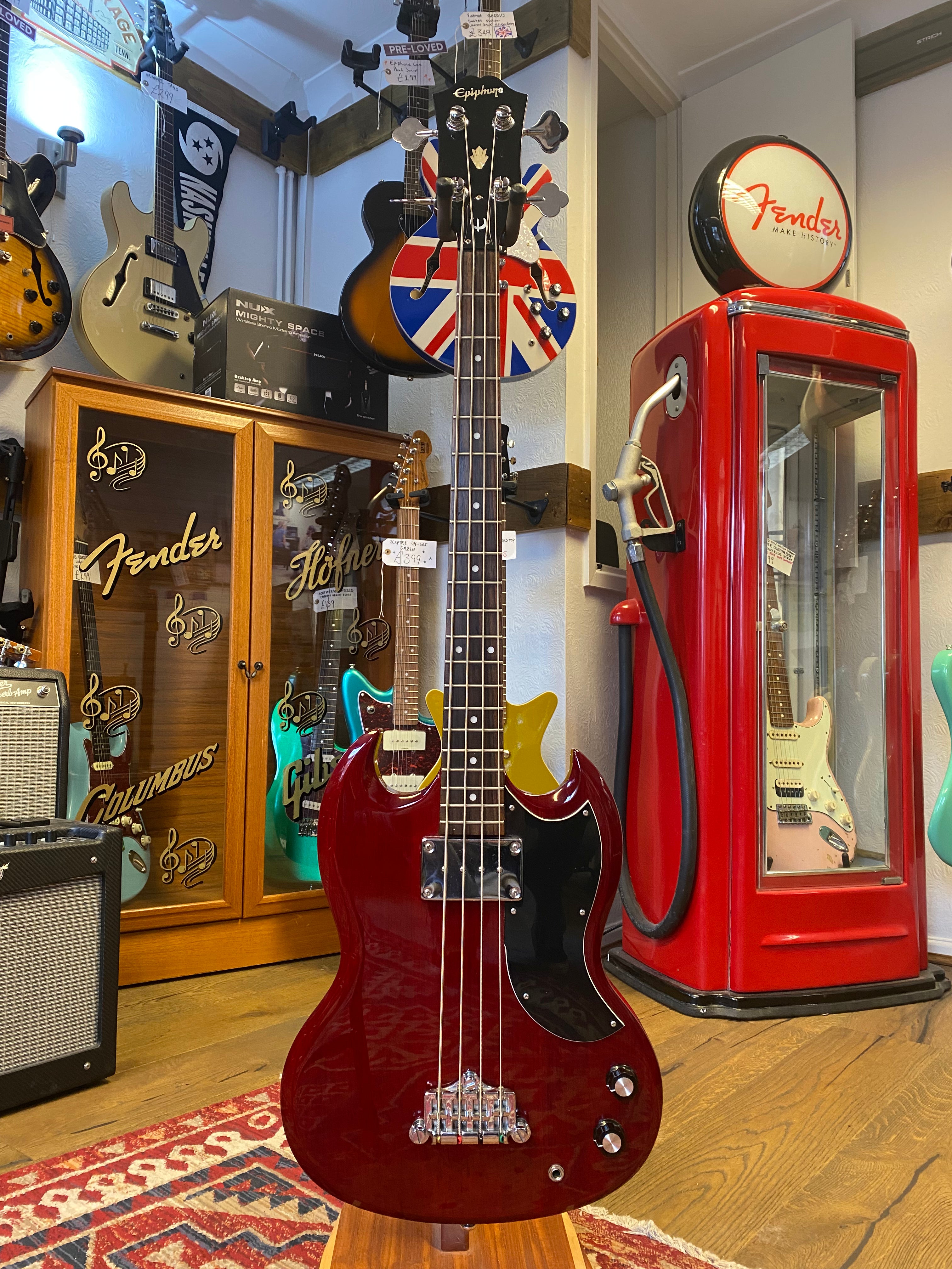 The Epiphone EB-0 SC Bass is an instantly recognisable sleek and stylish short scale bass that is suited to a range of playing styles thanks to its powerful, rich tones. Designed in the classic SG shape, the neck and body are carved from mahogany with a rosewood fretboard, delivering gloriously warm tonal characteristics.